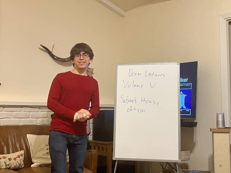 Dorm Lectures is a place for ideas we don't otherwise have a space to consider. Each Sunday night we bring two students to a dorm on campus to talk for 15 minutes about an idea they care about.